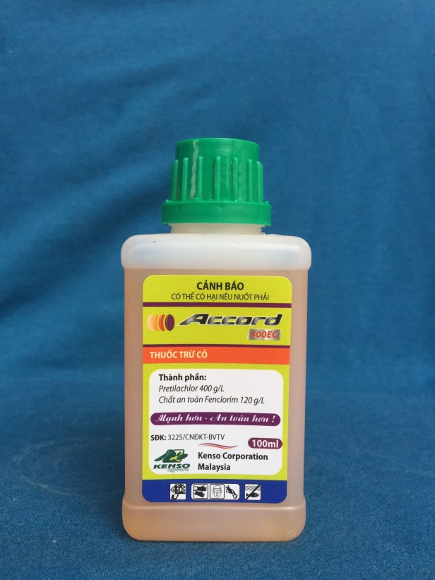 Thuốc trừ cỏ ACCORD 400EC có thành phần hoạt chất là Pretilachlor 400g/l + chất an toàn Fenclorim 120g/l