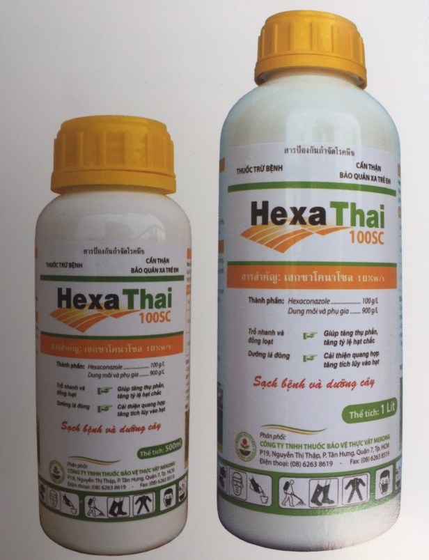 – Hexathai 100SC là thuốc trừ sâu có nguồn gốc sinh học thế hệ mới, với dạng huyền phù có chứa hoạt chất Hexaconazole mang lại đặc tính ưu việt.